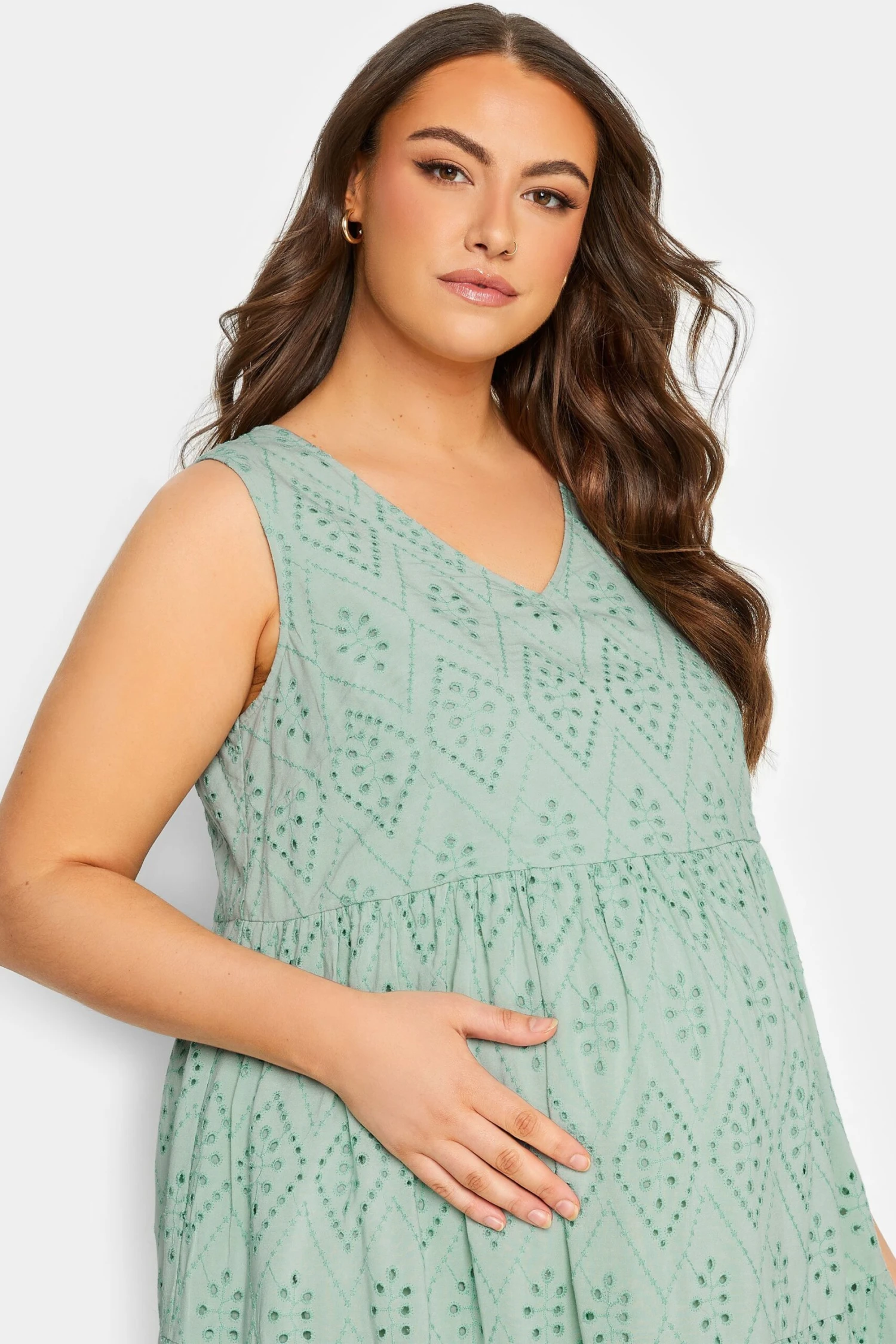 BUMP IT UP MATERNITY Curve Sage Green Broderie Anglaise Tiered Midi Dress