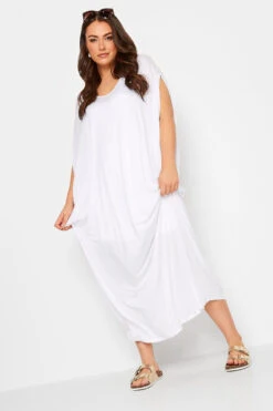 YOURS Curve White Double Layered Midi Dress