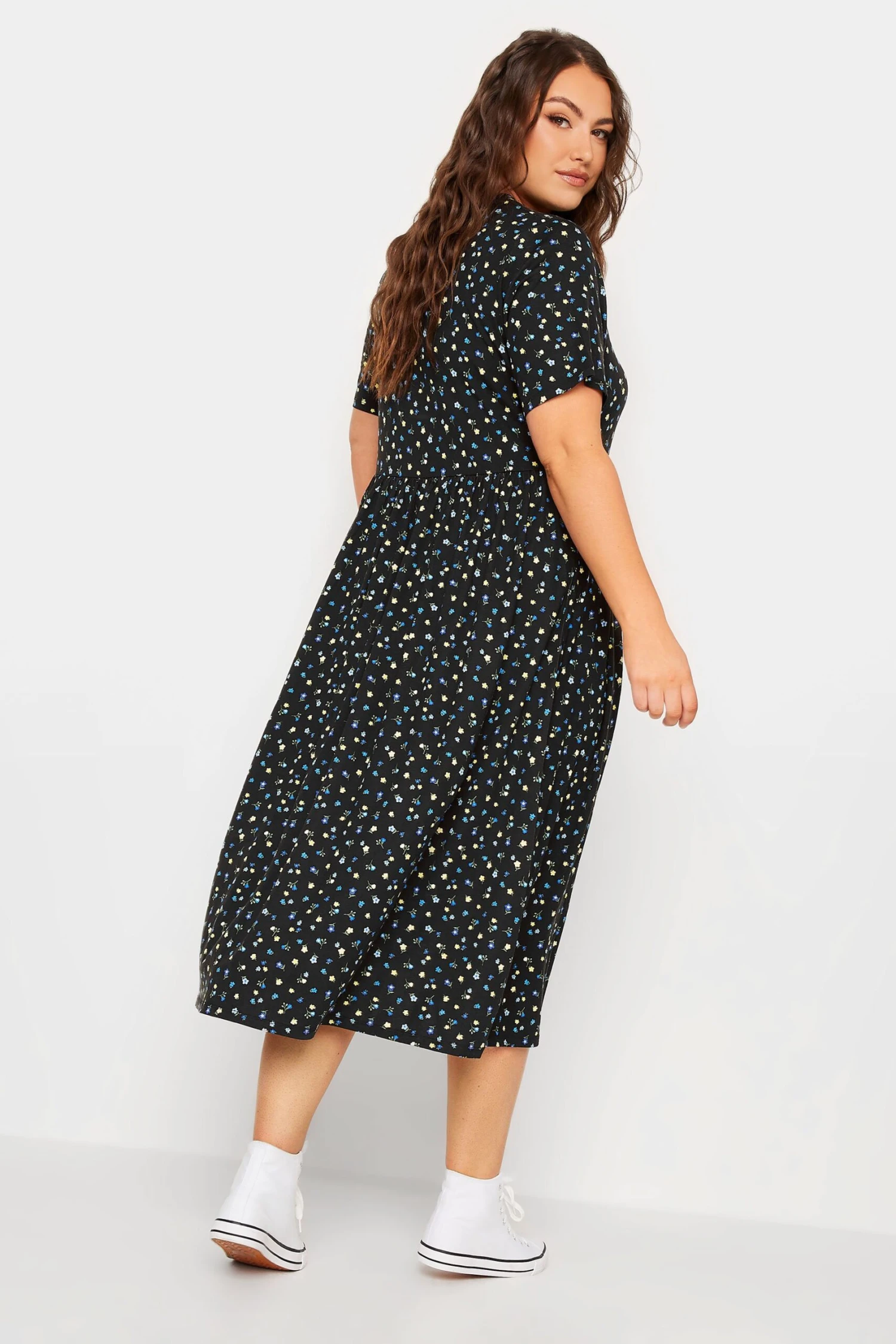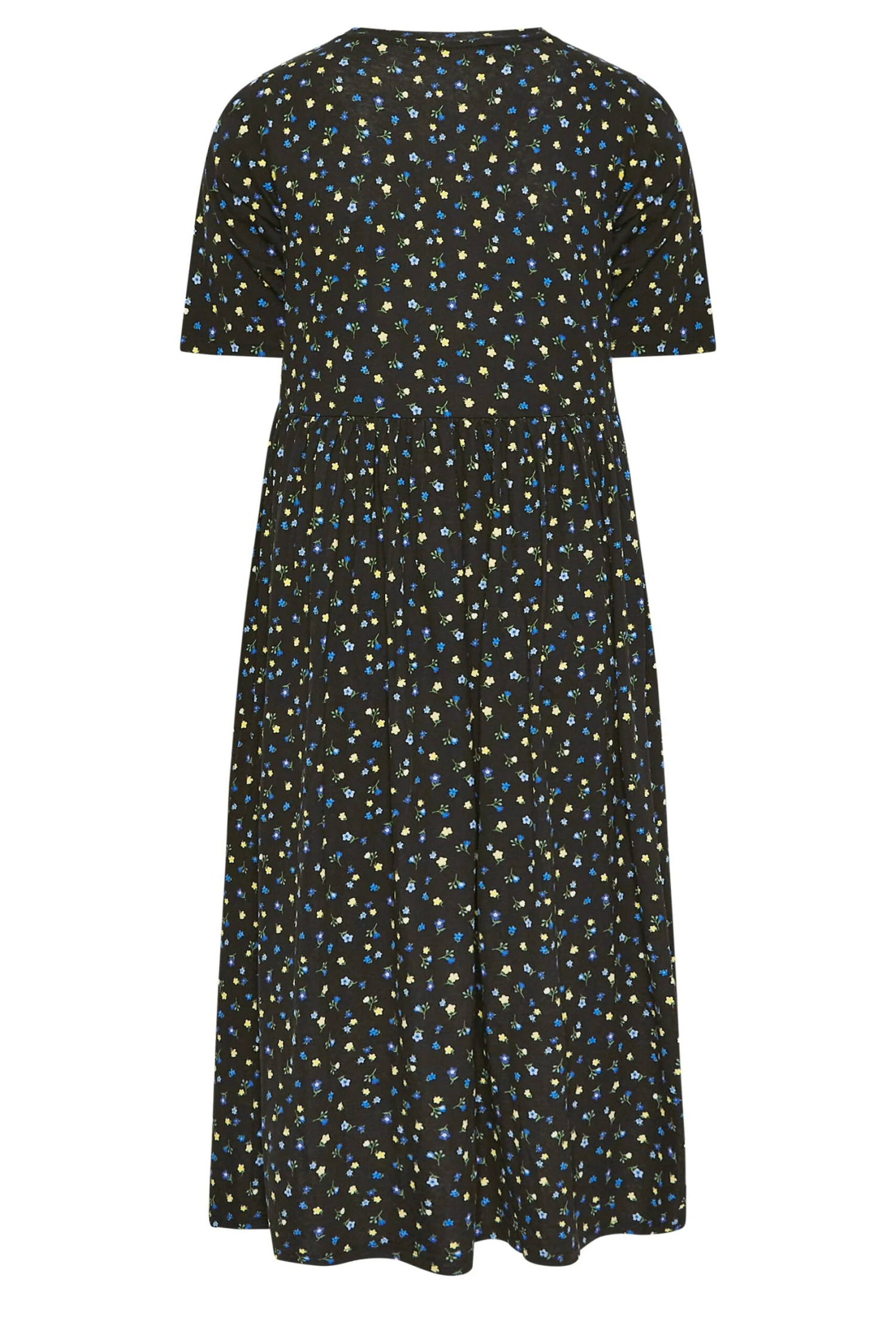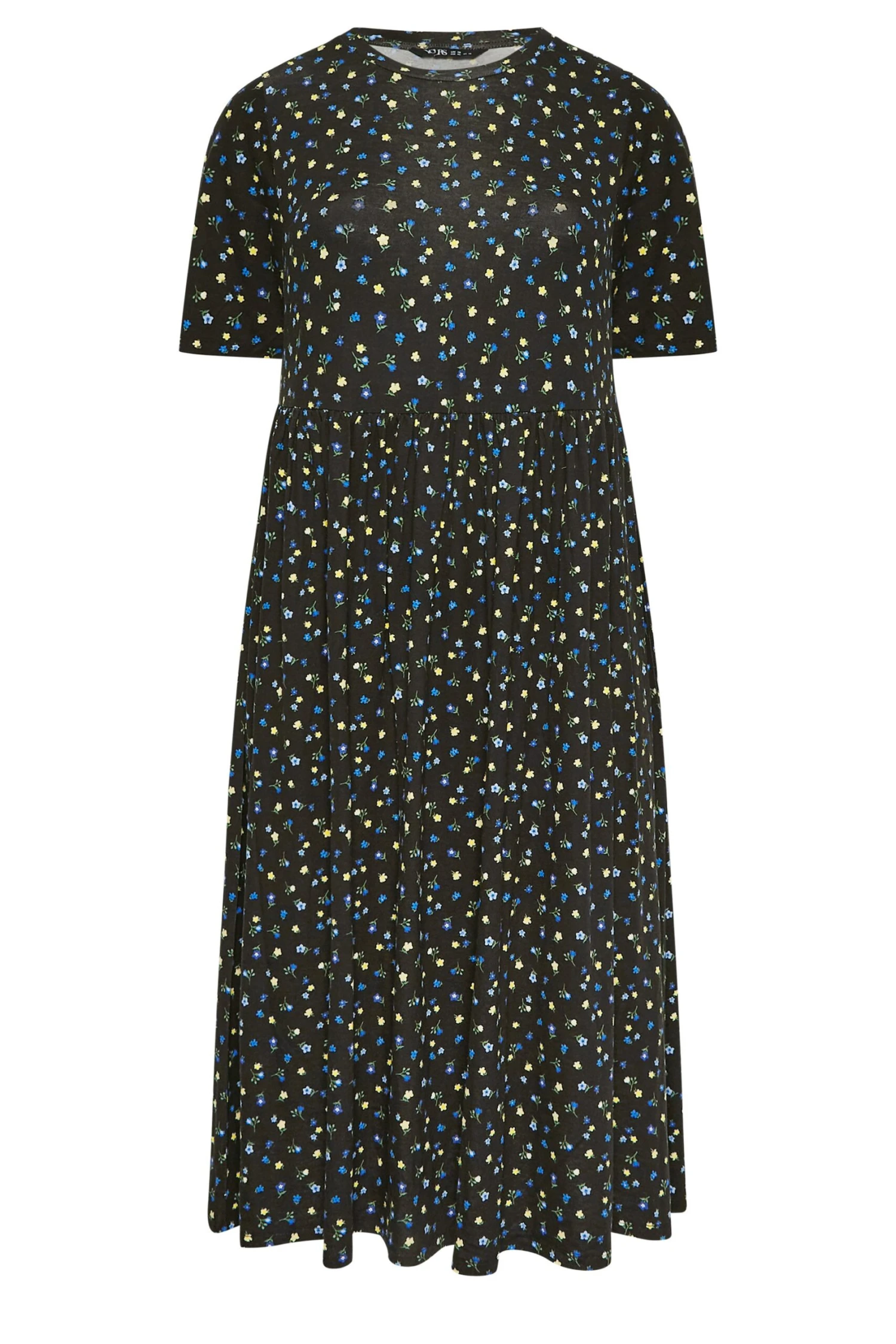 Enjoy the sun in style with this new-in midi dress. Made from a comfortable jersey fabric this dress features a floral design, short sleeves, a smock style, and a scoop neckline. Wear with trainers for a casual summer look.