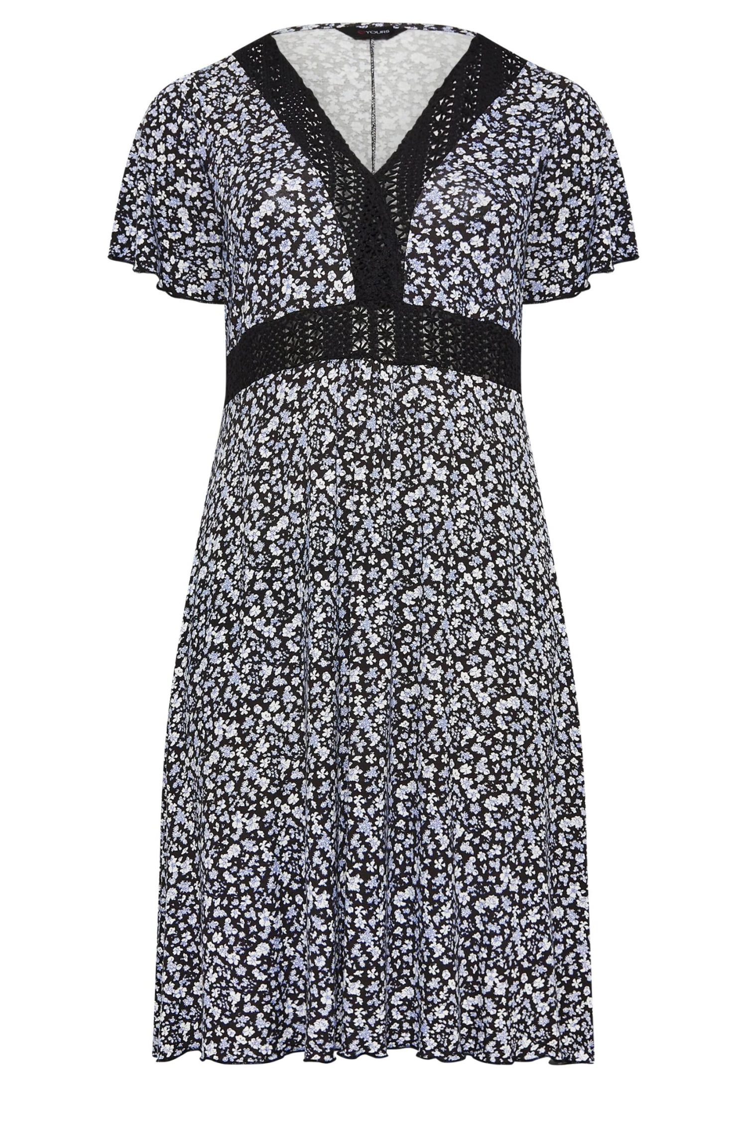 Got a dinner date this weekend? Wear this new-in plus size dress to look and feel your best. Made from a stretch jersey fabric, it features a v-neckline with short sleeves and lace detail, complete in a ditsy print. Pair with heels and a clutch bag to finish the look.