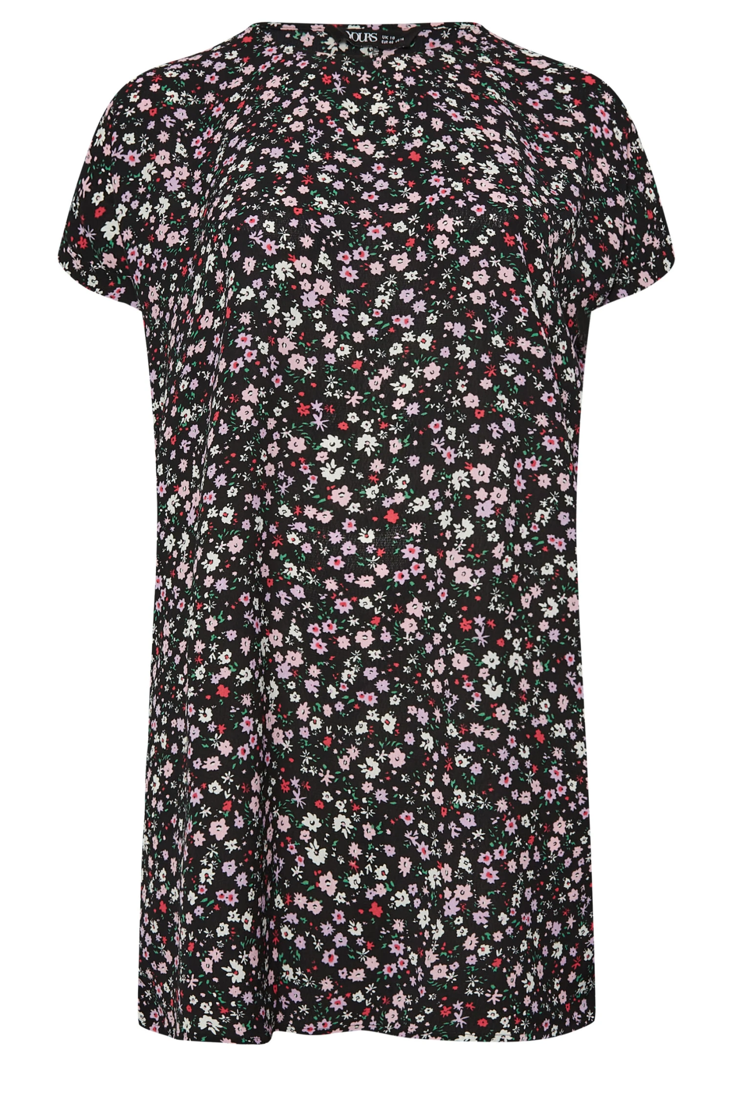 Refresh your style with this new-in plus size shift dress. Designed in a comfortable woven fabric, it features a scoop neckline with short sleeves and a dipped hem, complete in a ditsy print. Pair with sandals or heels to suit your plans.