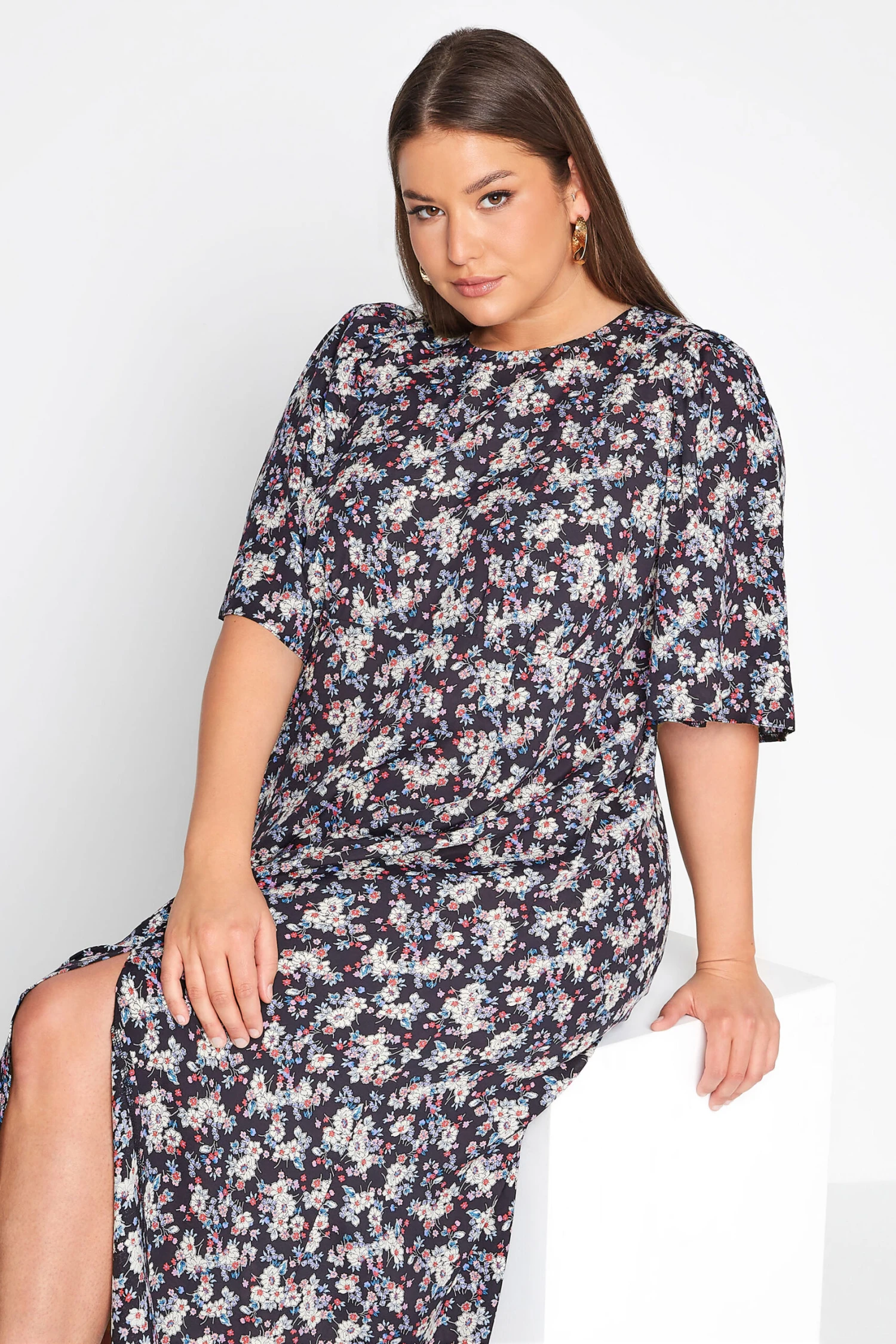 Feel your most confident in this plus size ditsy midi dress. Made from a soft woven fabric, it features a scoop neckline, short flare sleeves and a side split hem. Style with your favourite heels and clutch bag for a look you can rely on.