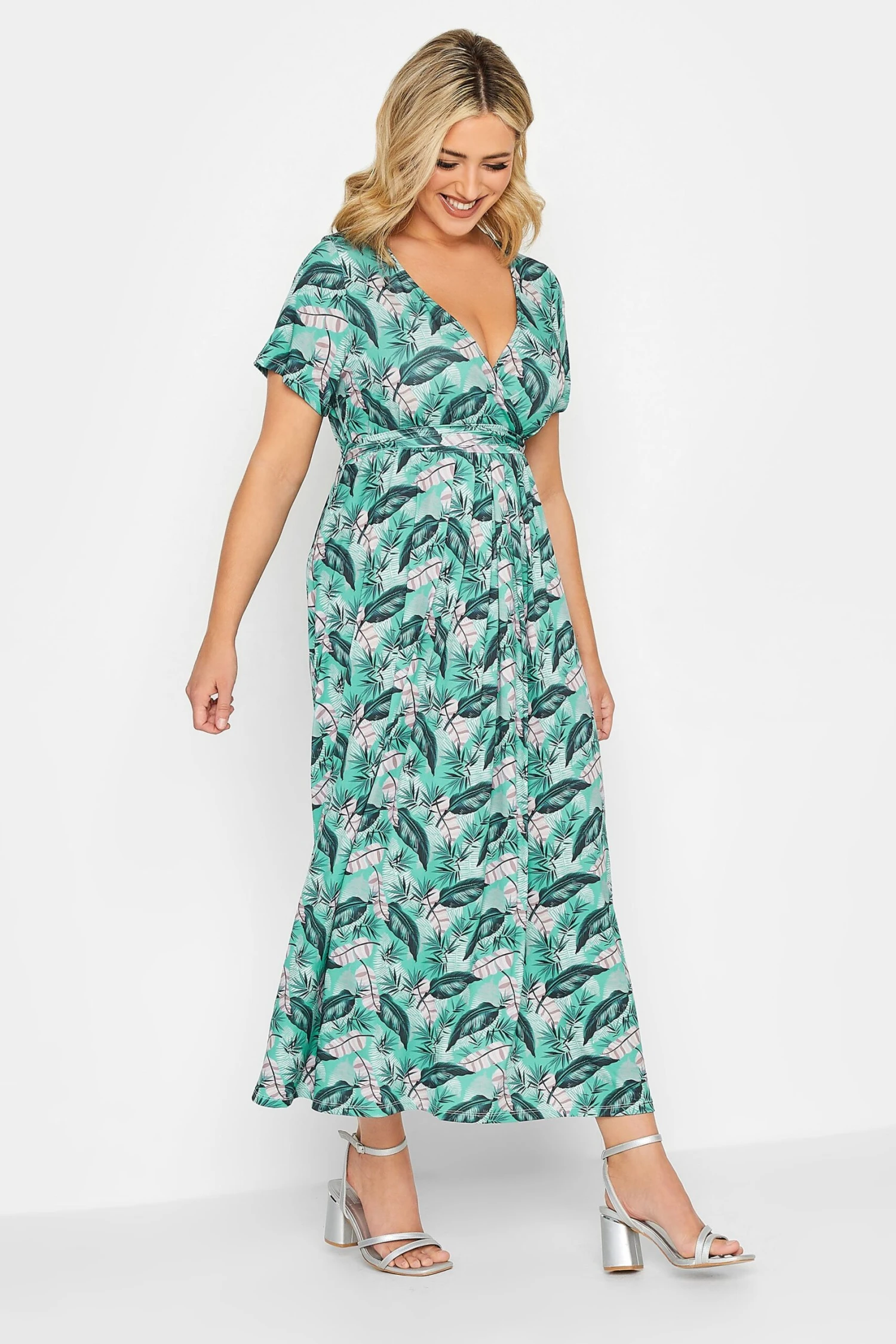 YOURS Curve Light Blue Leaf Print Maxi Wrap Dress