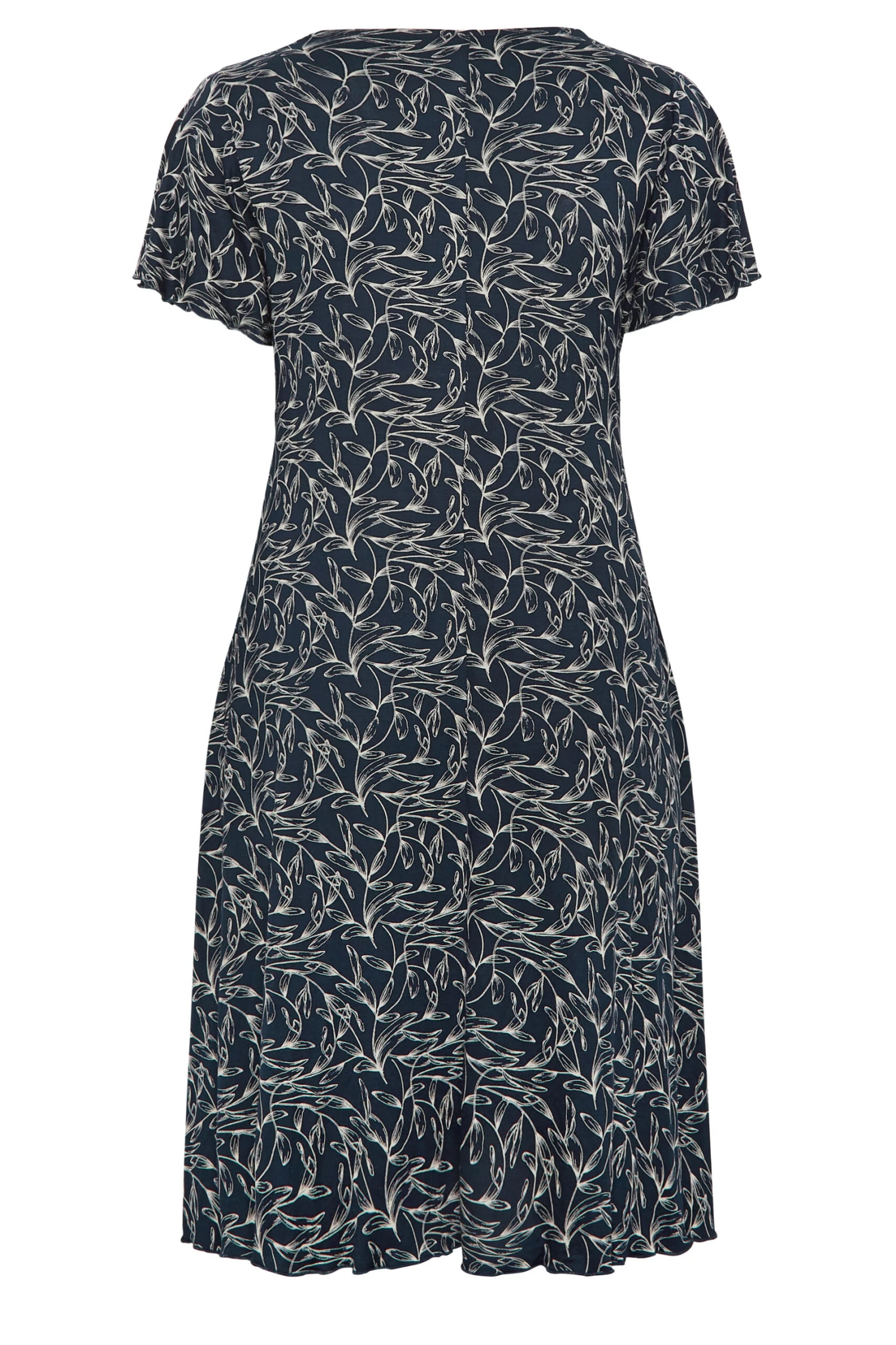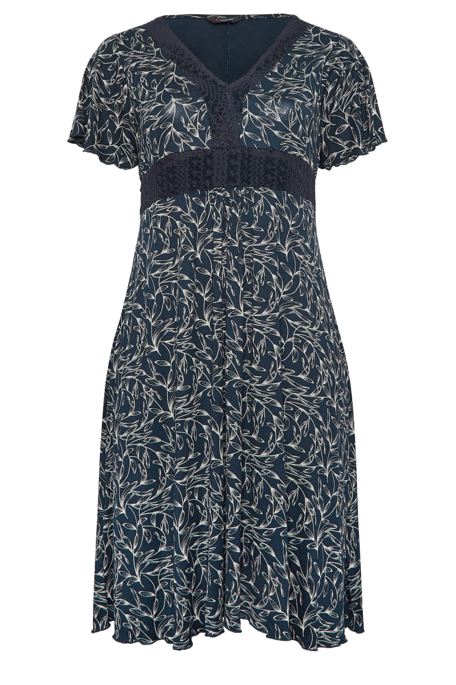 YOURS Curve Navy Blue Leaf Print Lace Detail Dress