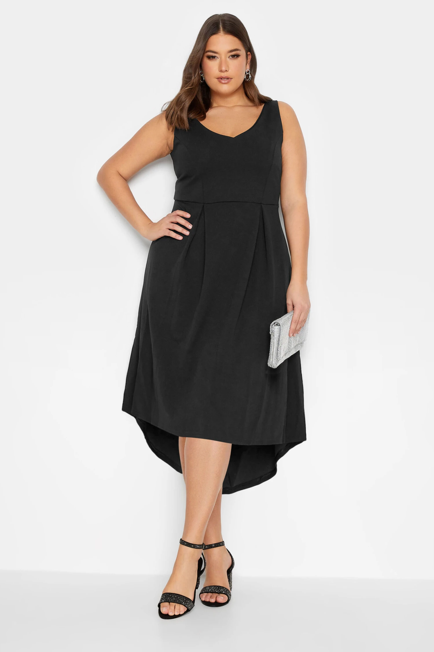 Seasonal occasionwear is here to stay. This Yours London plus size wedding guest dress features a sleeveless design with a flattering v-neckline, finished with a high low hem and pleated front details. Compliment with heels and a clutch for an effortless and elegant look.