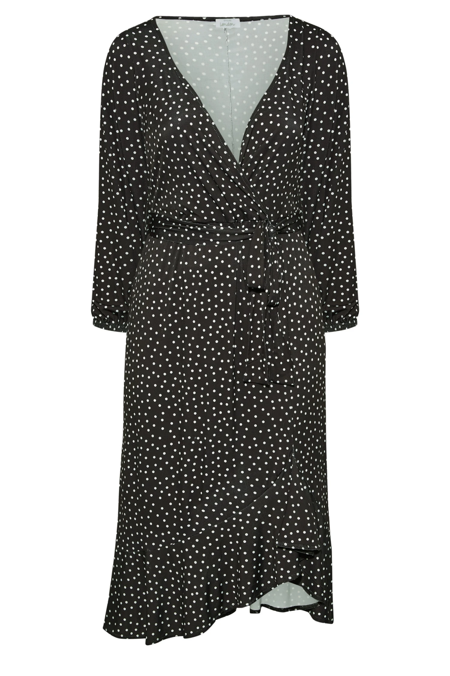 YOURS LONDON Curve Black Polkadot Ruffle Wrap Dress