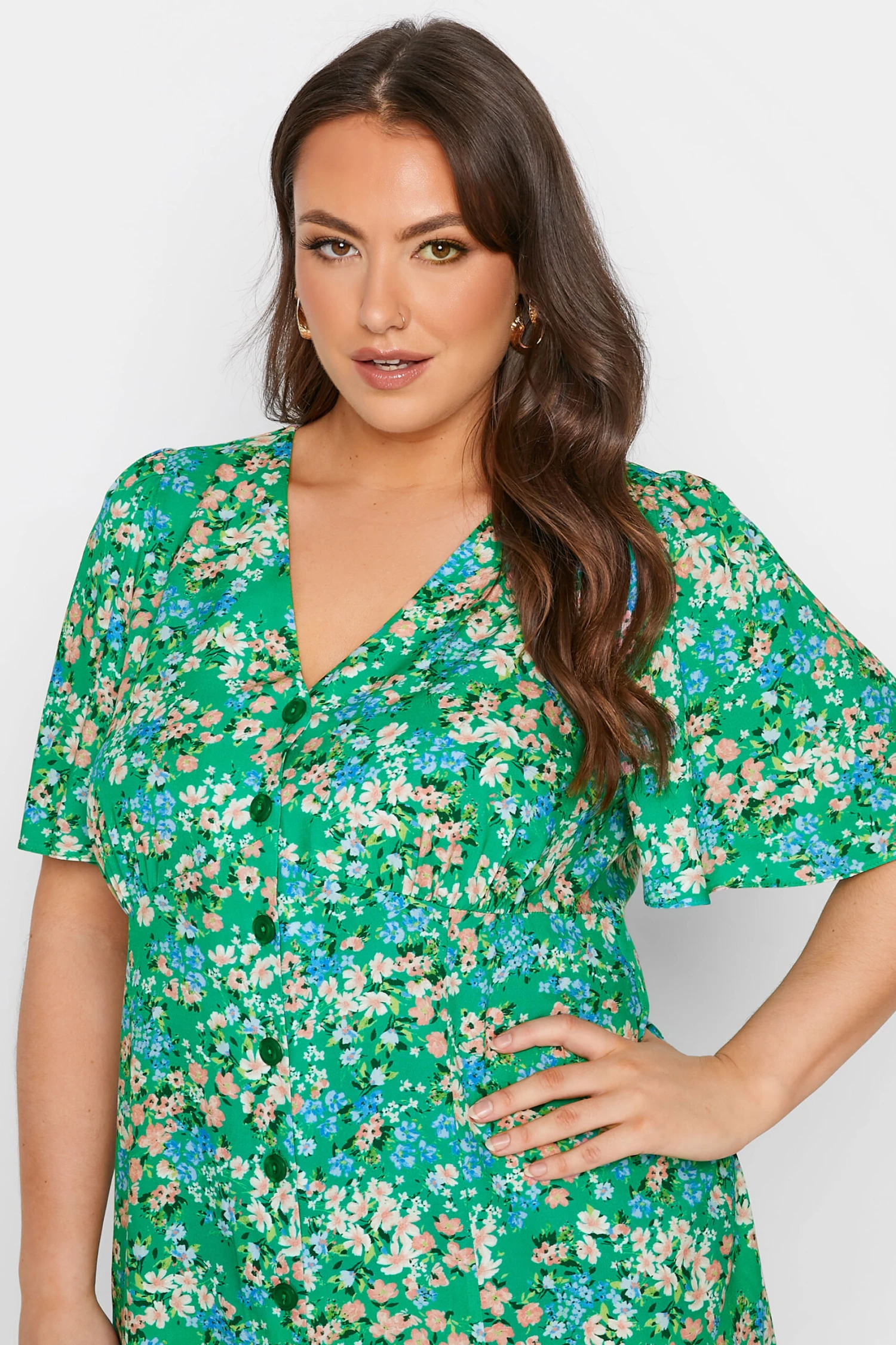 YOURS LONDON Curve Green Floral Print Button Through Tea Dress