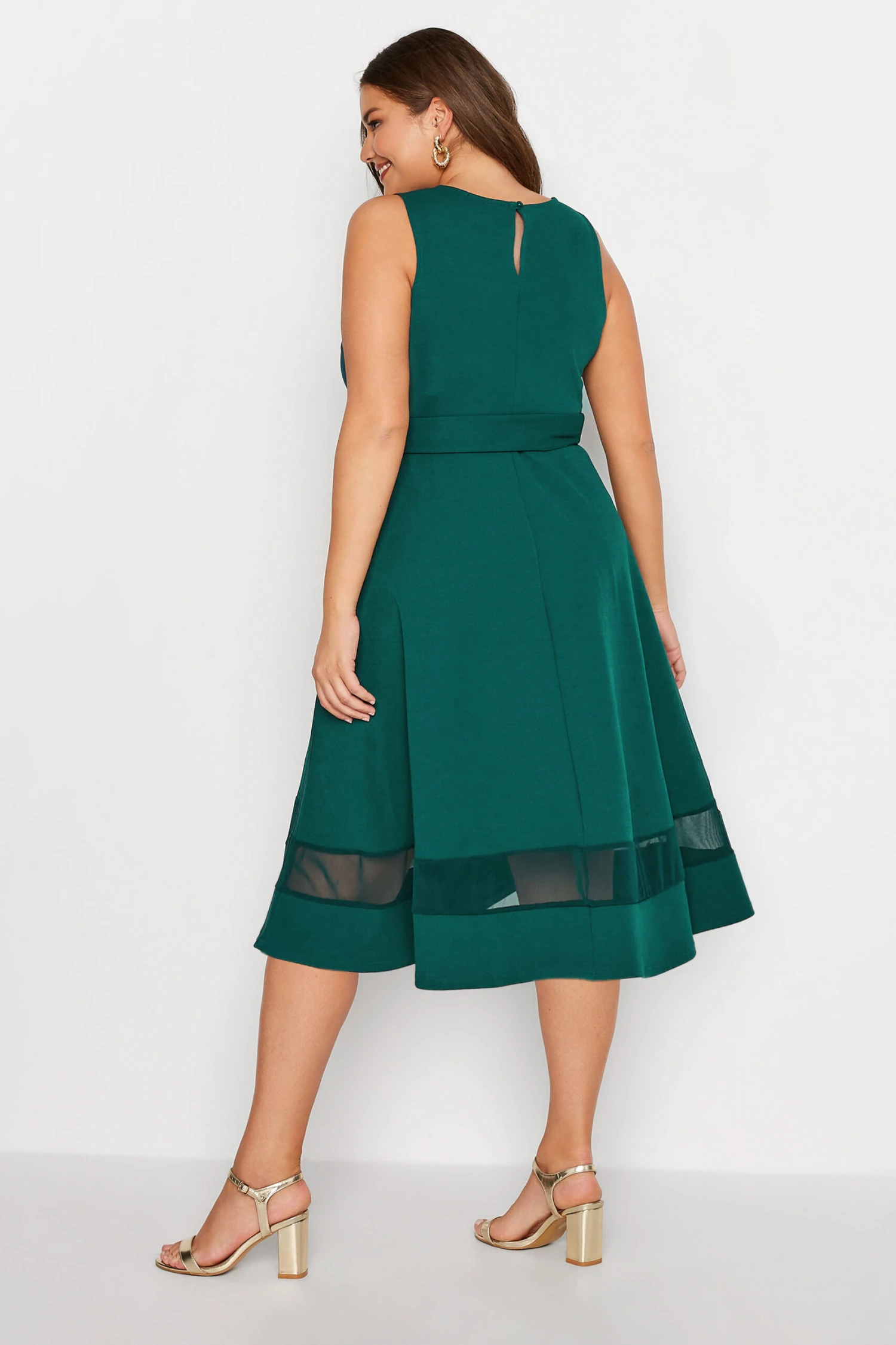 Refresh your occasionwear with this plus size wedding guest dress from Yours London. Made from a comfortable scuba fabric, it features a scoop neckline, mesh panelling, and an adjustable tie belt to cinch in your waist. Complete with a sleeveless design, pair with heels to dance the night away!