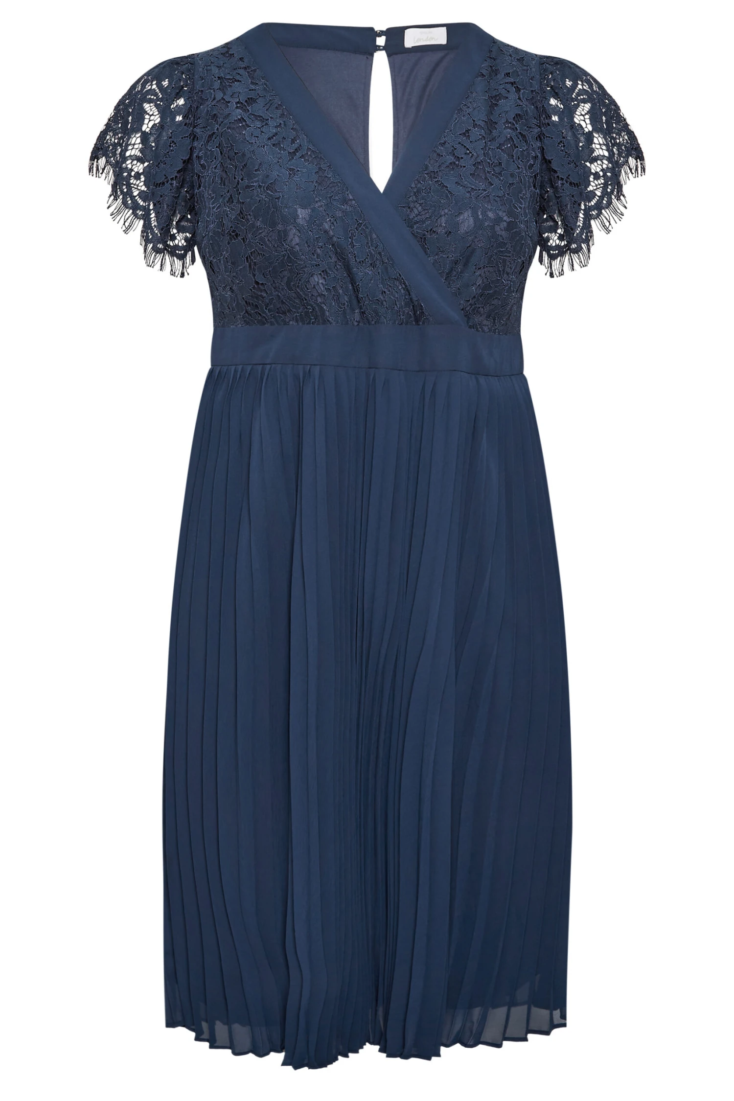 Get ready for the wedding season in this plus size dress, exclusive to Yours London. Suitable for bridesmaids or wedding guests. Made from a comfortable woven fabric, it features short sleeves with lace detail, a wrap v-neckline, and a chiffon pleated skirt, complete at a midi length. Effortlessly style with heels and a clutch bag.