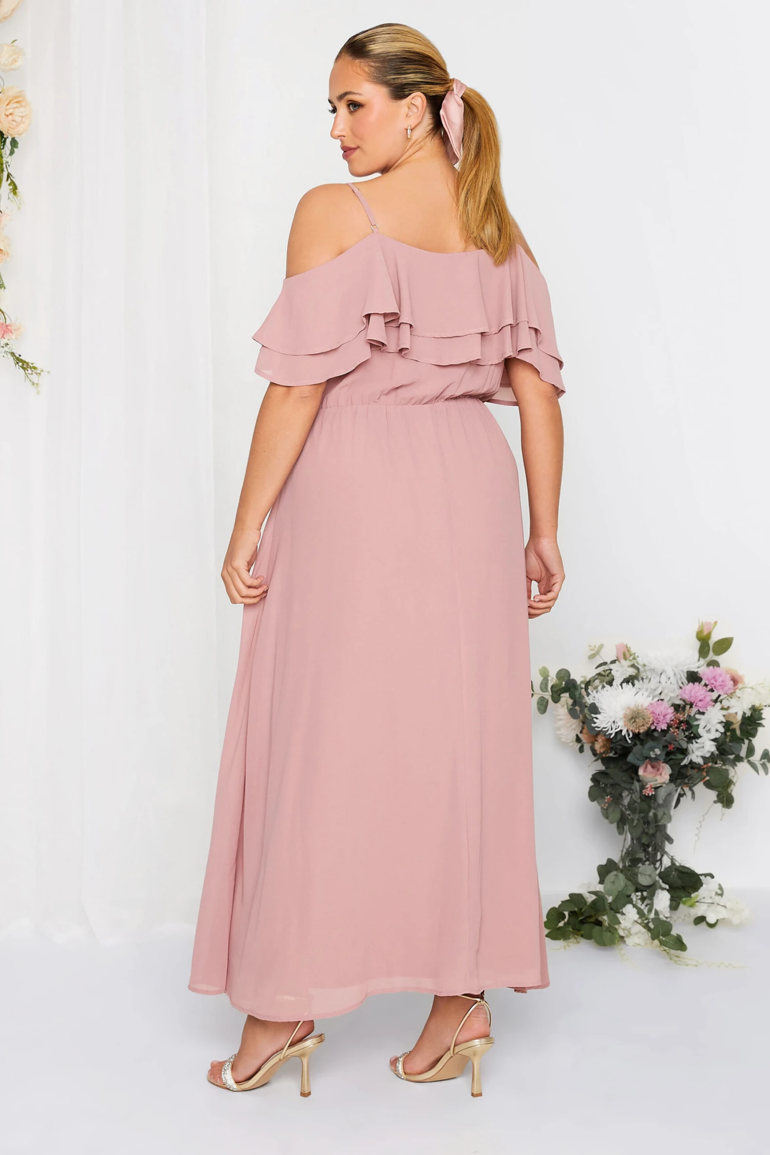 Whether you’re a bridesmaid or wedding guest, this plus size maxi dress from Yours London is the perfect option for your next special occasion. Made from a chiffon fabric, it features ruffle detail, an elasticated waistband and adjustable straps for a comfortable fit. Complete with heels for a look you can wear with confidence.