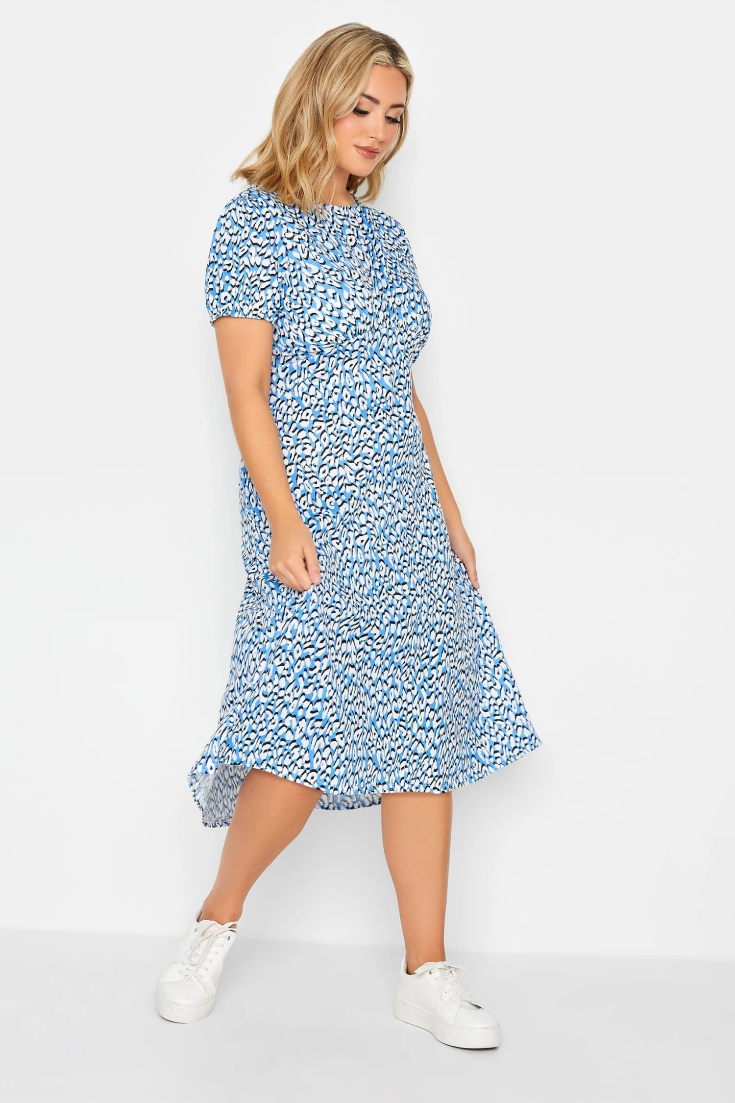 The perfect dress for the seasons ahead! Made from a comfortable jersey fabric, this dress features an animal print, short sleeves, a crew neckline, finished in a midi length. Style with heels for a stylish summer look.