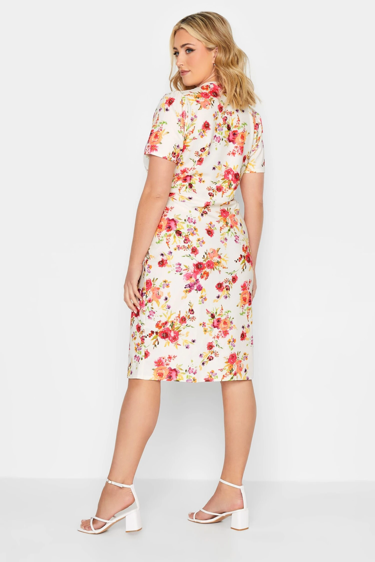 Perfect for the warmer seasons ahead! Made from a comfortable jersey fabric, this dress features a wrap design, a floral look, a midi length, and a v-neckline. Wear with heels for a stylish summer look.